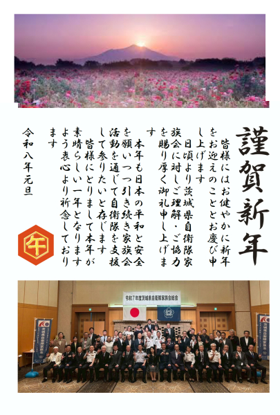 なお、つくば市自衛隊家族会会員でもあります国光文乃衆議院議員も政府の第2人者としてご挨拶をされ、県家族会として誇りに思った次第です。