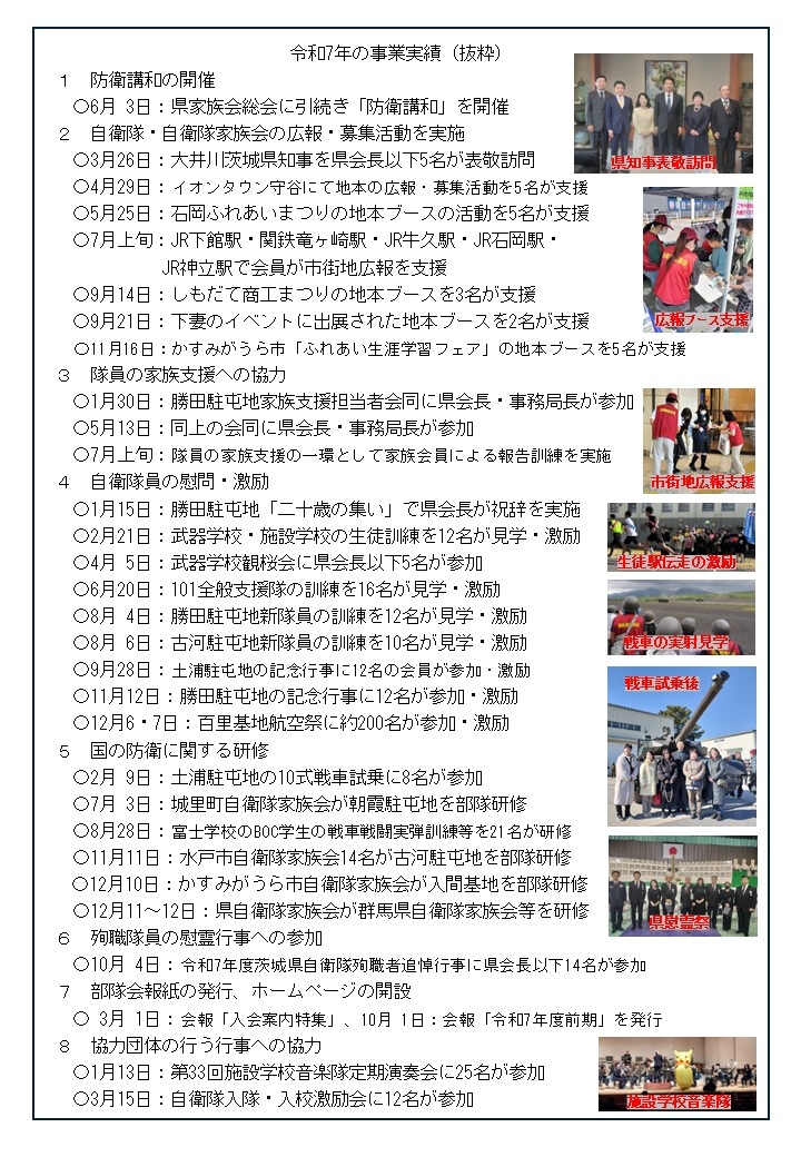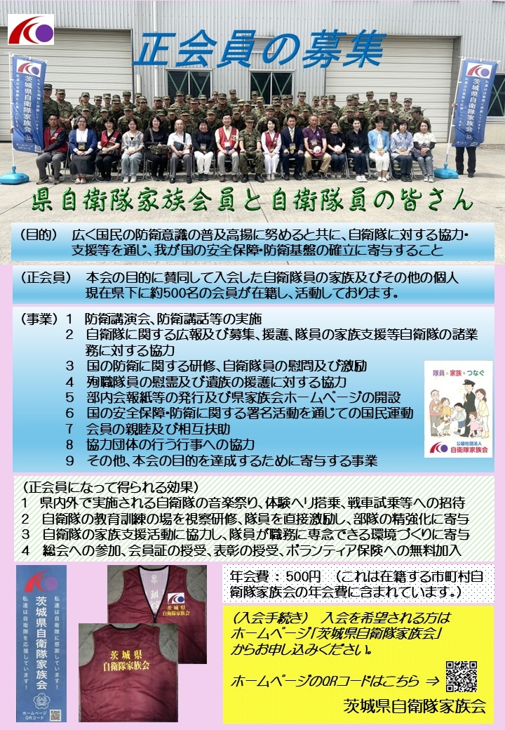 2 茨城県に居住する会員は茨城県自衛隊家族会に所属することになります。
