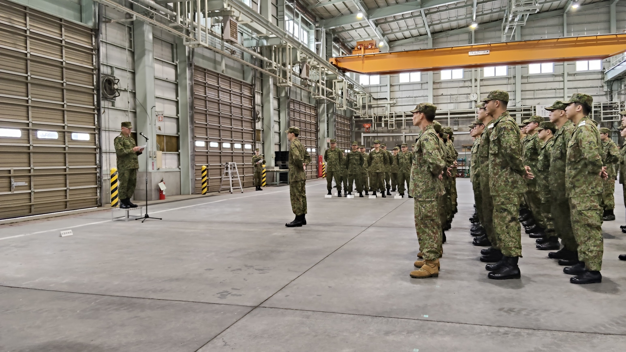 令和8年4月1日(水)に後方支援学校武器科部の生徒課程の皆さん47名が一斉に3等陸曹に昇任する昇任行事が行われ、県自衛隊家族会から正代県会長以下10名(県大森監事、県関根会計、県髙橋監事、かすみがうら市木間塚会長、龍ヶ崎市酒井副会長、石岡市中嶋会員、阿見町武井会員、水戸市鈴木会員、県正代事務局長)が招待され参加いたしました。