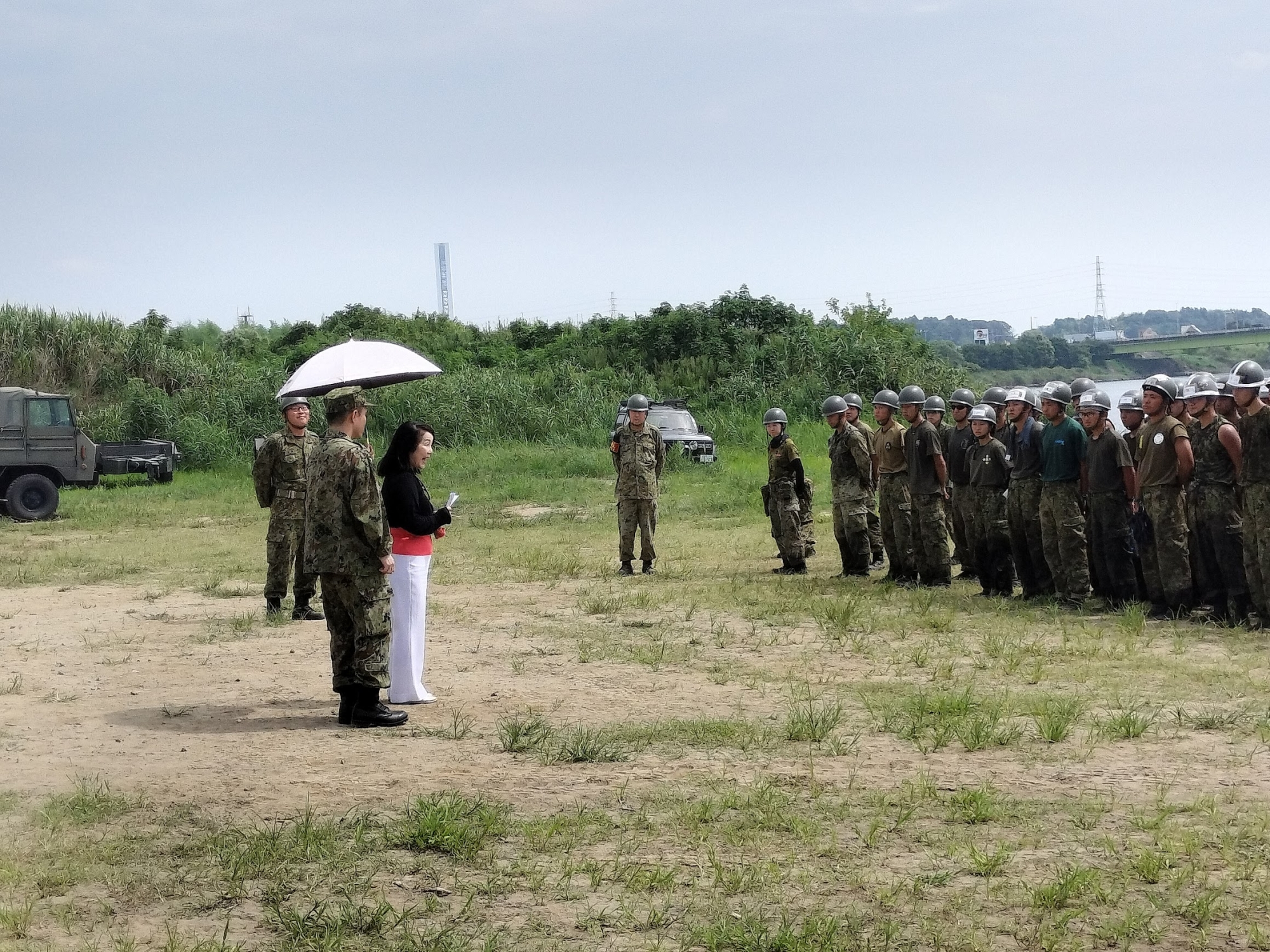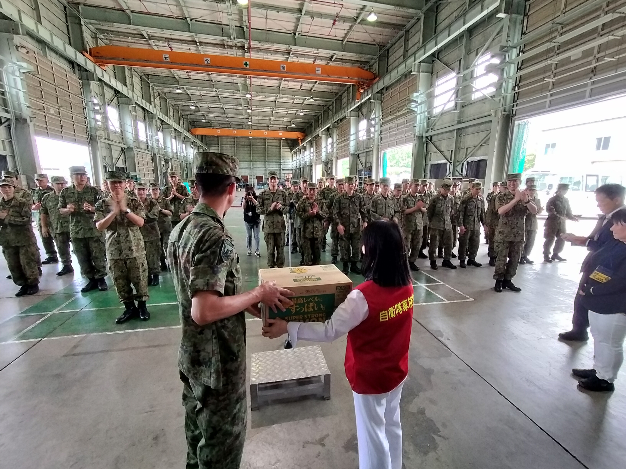 昼には体験部隊喫食後、部隊が整列され、家族会会員と激励式を行いました。
