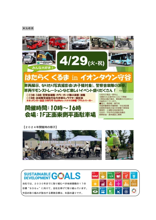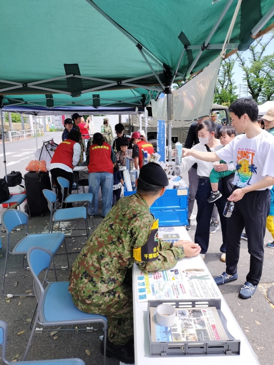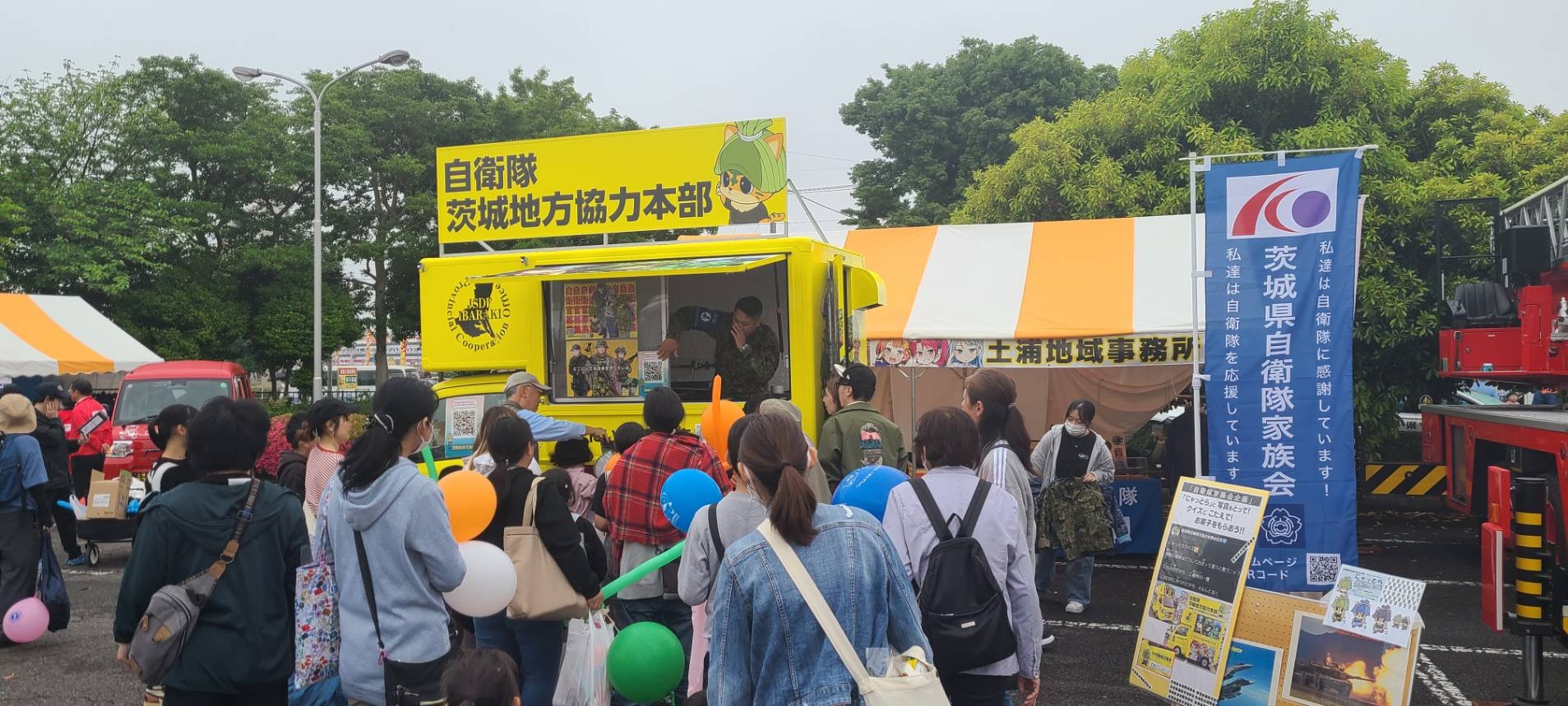 現地ではイベント「みんな大好き!はたらくくるまin イオンタウン守谷」が開催され、地元の警察・消防等が参加する中、自衛隊からは地本の龍ケ崎事務所(武器学校協力)が参加されました。