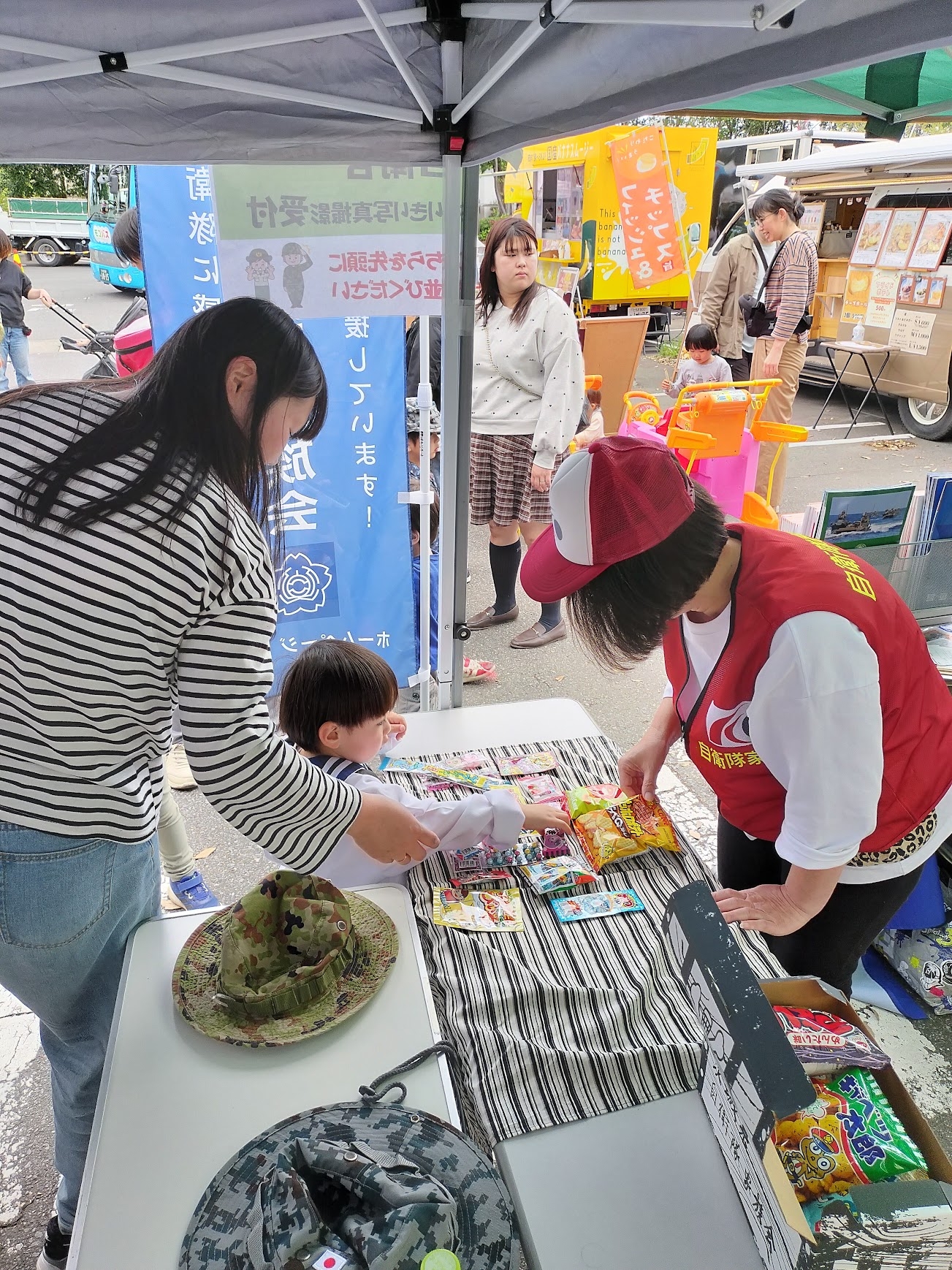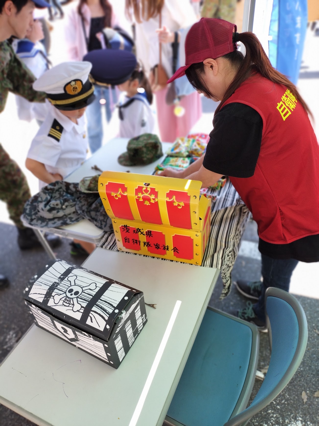 賑わいが最高潮となった時期には、児童のコスプレへの変身の補助も家族会員を参加させていただき、自衛隊と家族会のコラボはとてもうまくいきました。
