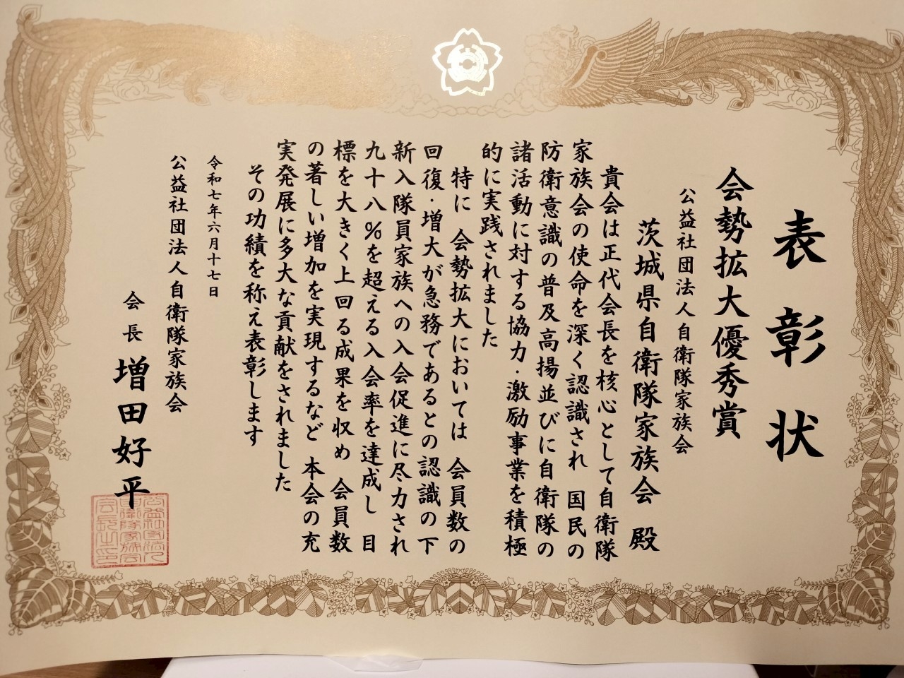 ここに茨城県自衛隊家族会の会員皆様に深甚なる感謝を申し上げます。