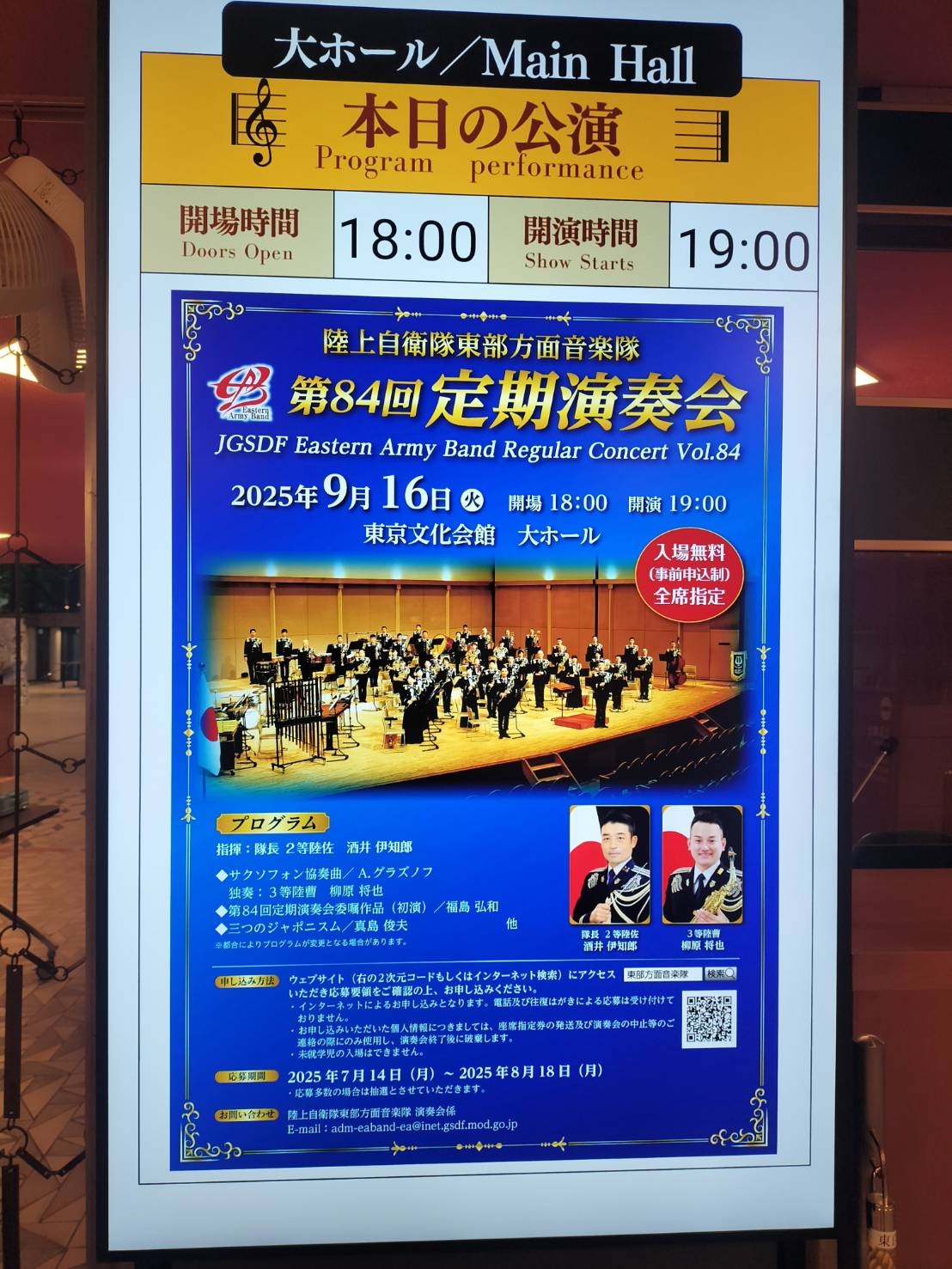 24 9月16日(火)東部方面隊招待、第84回定期演奏会に参加