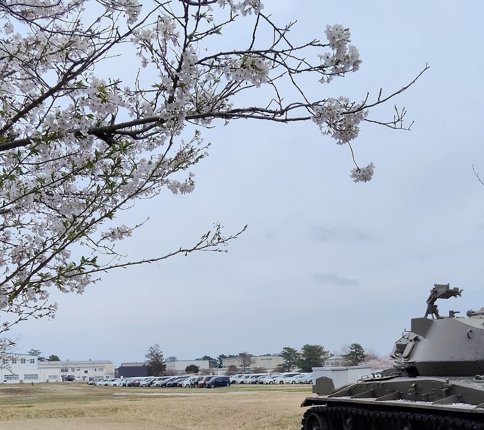 令和8年4月5日(日)土浦駐屯地にて春の一般公開が実施され、多くの観桜を楽しむ人々が訪れました。ほとんどの皆さんは自家用車で来場のため、駐屯地グランドが車両の駐車場として開放され、一時は満車の状態となりました。
