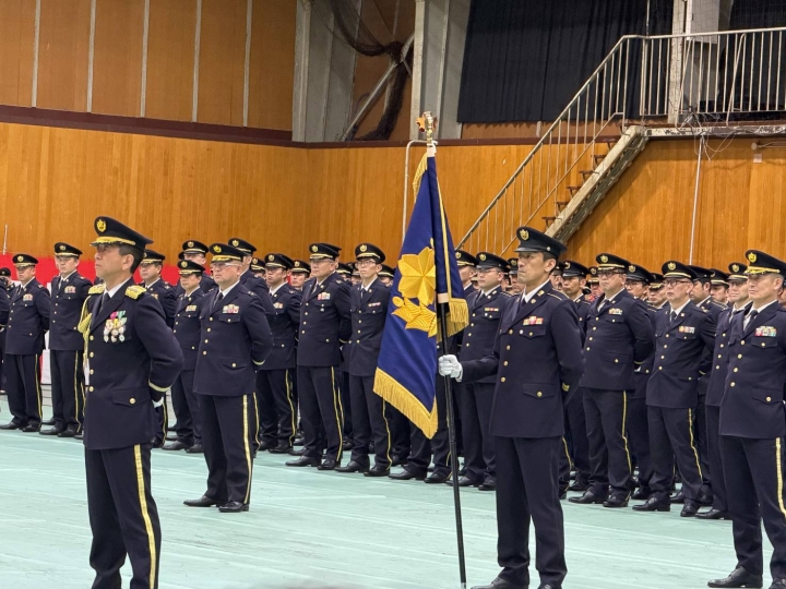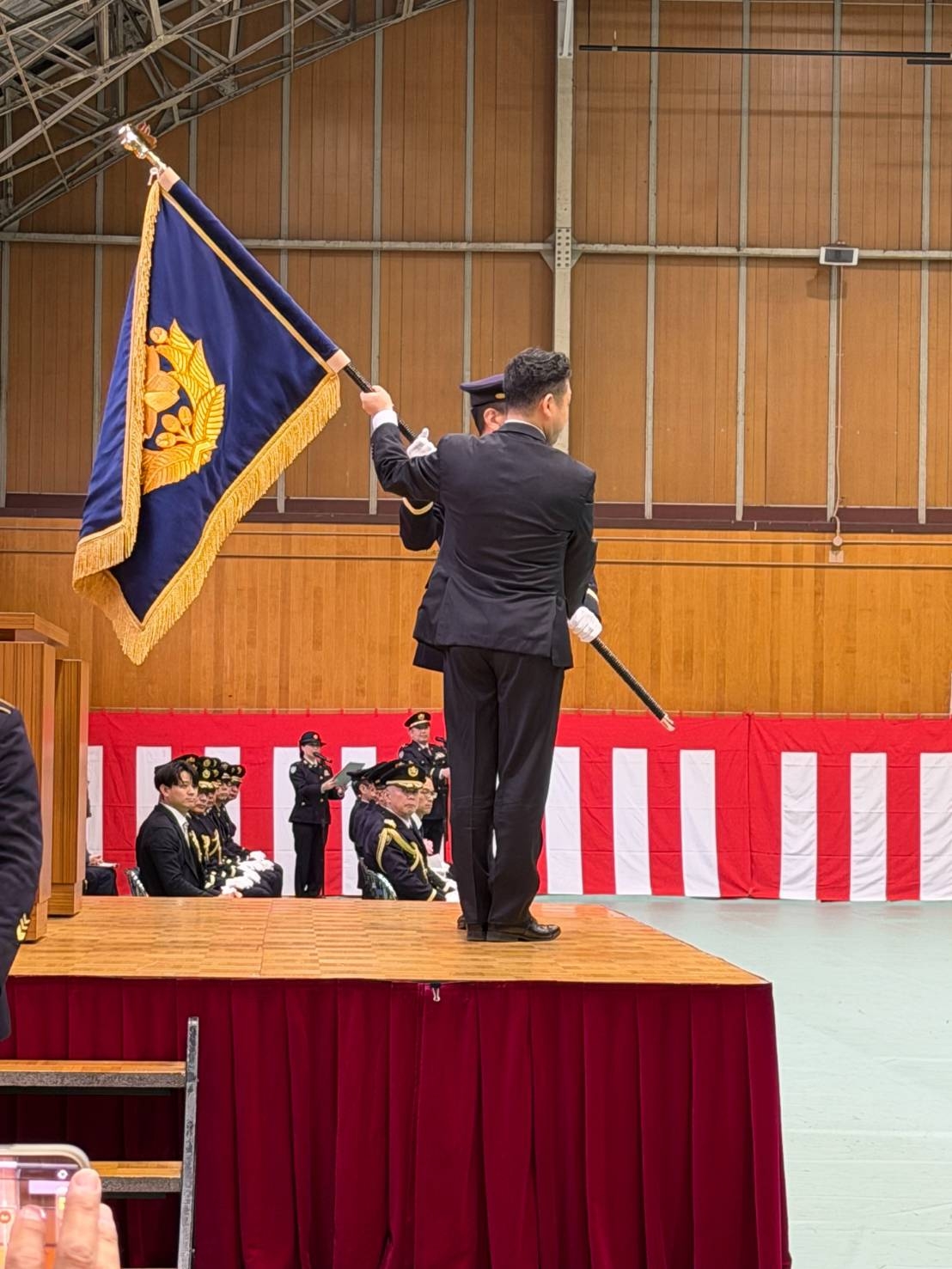当日は11時10分から後方支援学校の編成完結式が行われ、学校長に対し校旗が授与されました。