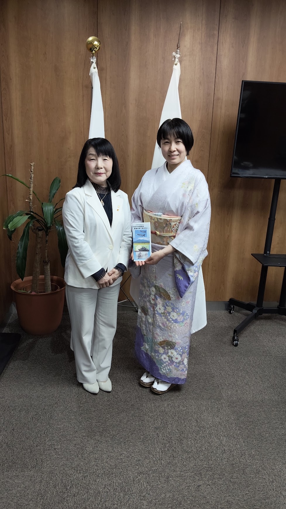 令和8年4月8日(水)に筑西市市長 設楽 詠美子(しだら えみこ) 様を正代初代県自衛隊家族会会長が表敬訪問いたしました。