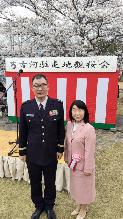 令和8年4月4日(土)、古河駐屯地にて観桜会が実施され、地元出身の国会議員、首長さんの他県会議員、市会議員の方々、また、施設団のOB会、協力会の方々が参加されるなか、県自衛隊家族会からは正代県会長、地元の大足筑西市会長、雨貝筑西市理事、須藤県理事ご夫妻、正代県事務局長が招待され参加しました。